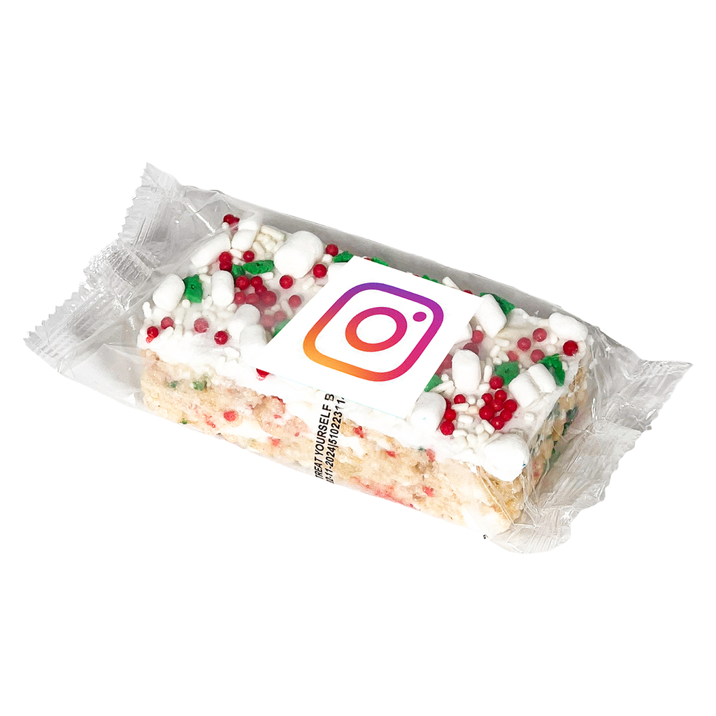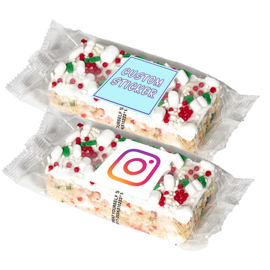 TREATSTIX-FD - 2" x 4" handmade marshmallow crispy rice bar, individually wrapped with custom sticker